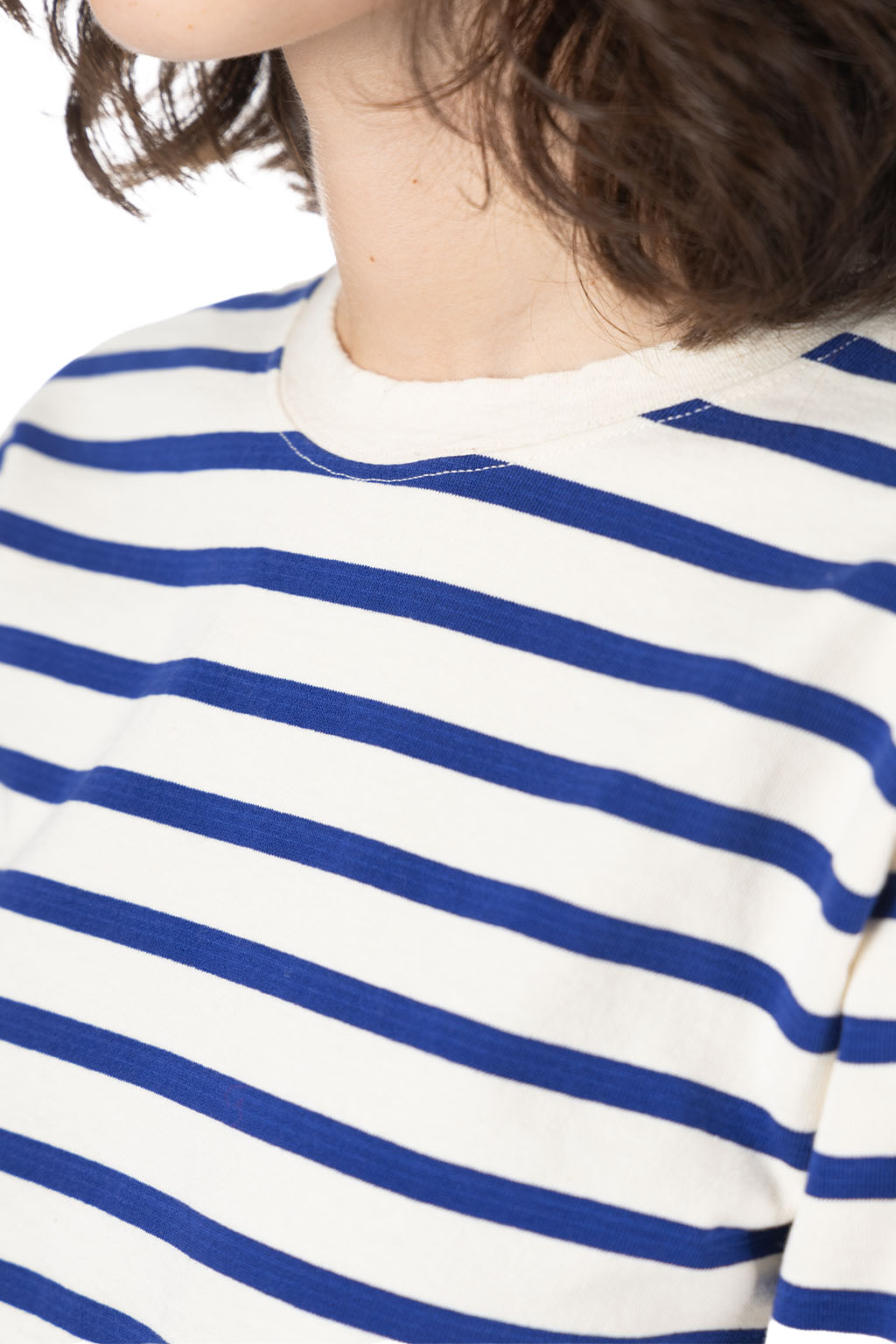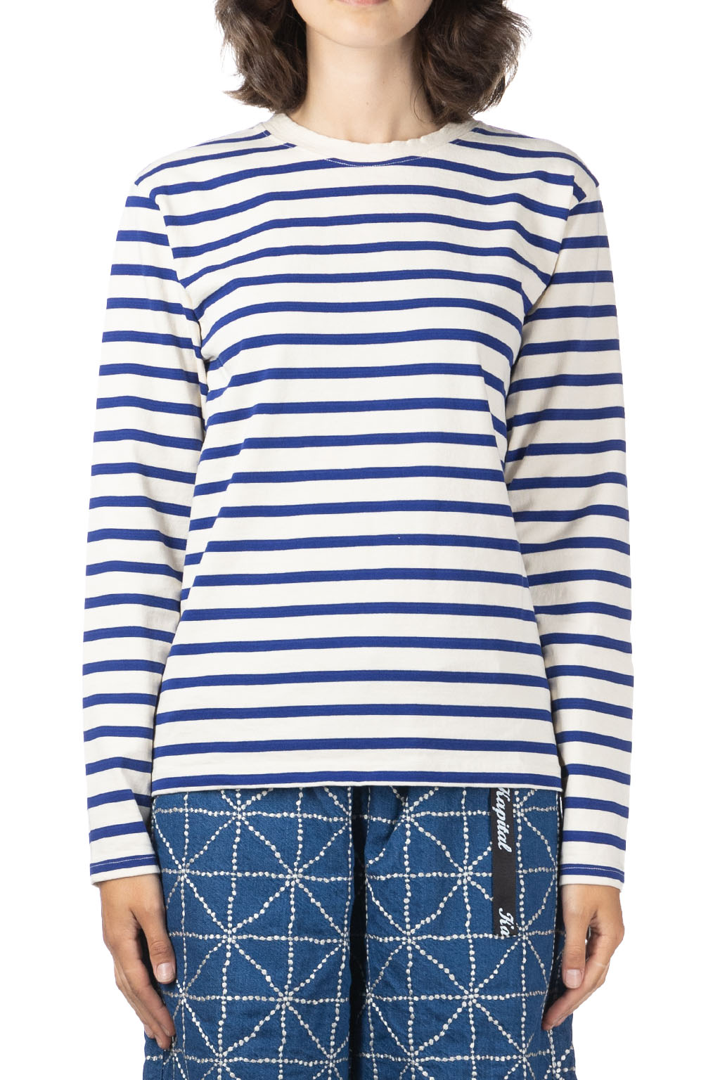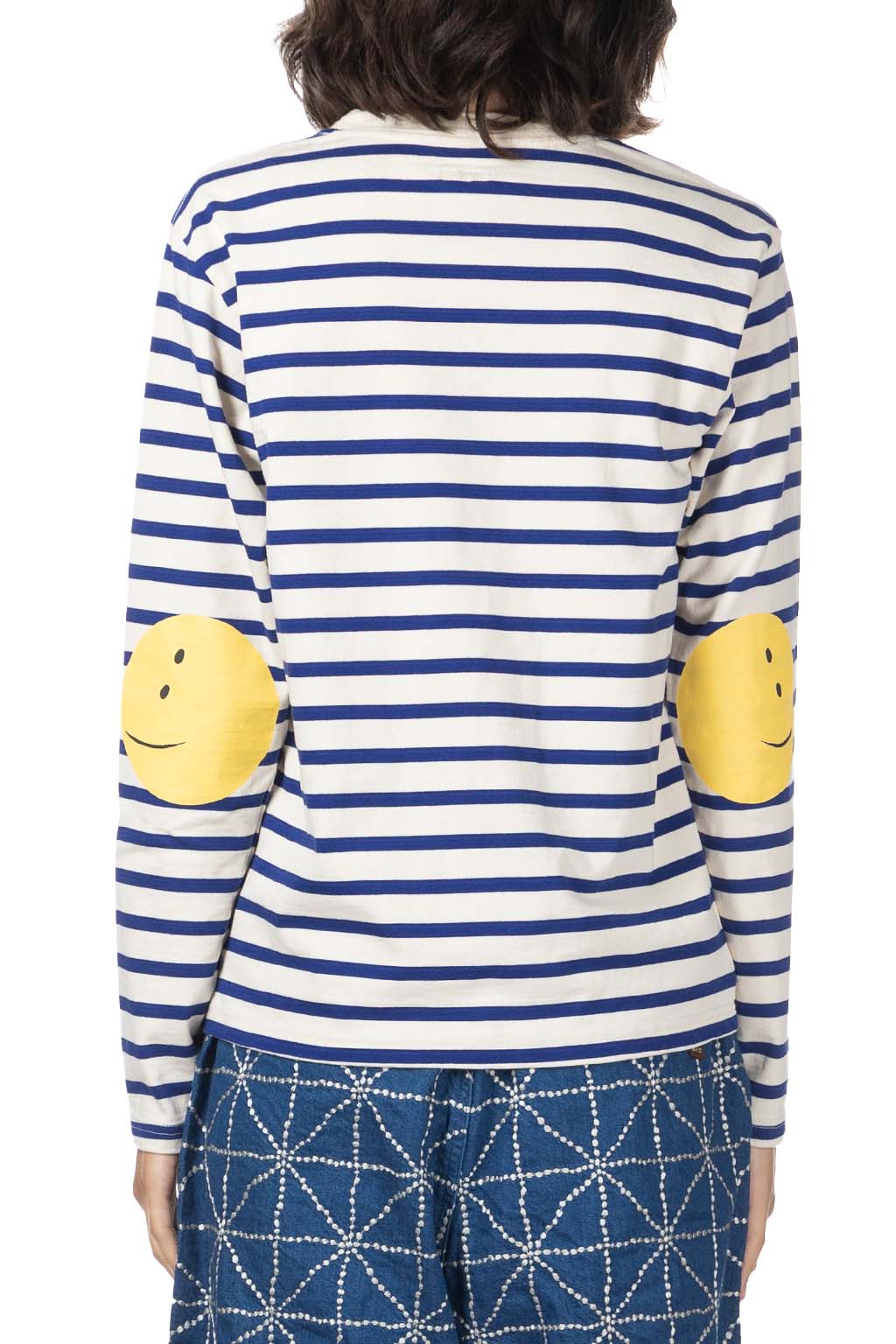 Stripe Jersey Crew LS Tee (PROFILE RAINBOWY Patch) - Ecru x Blue