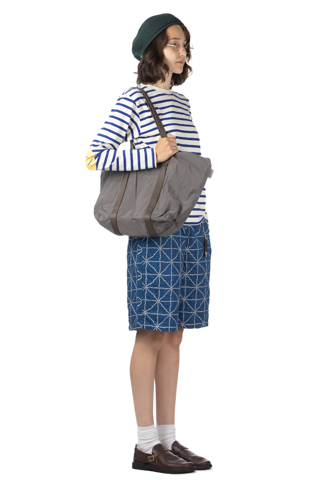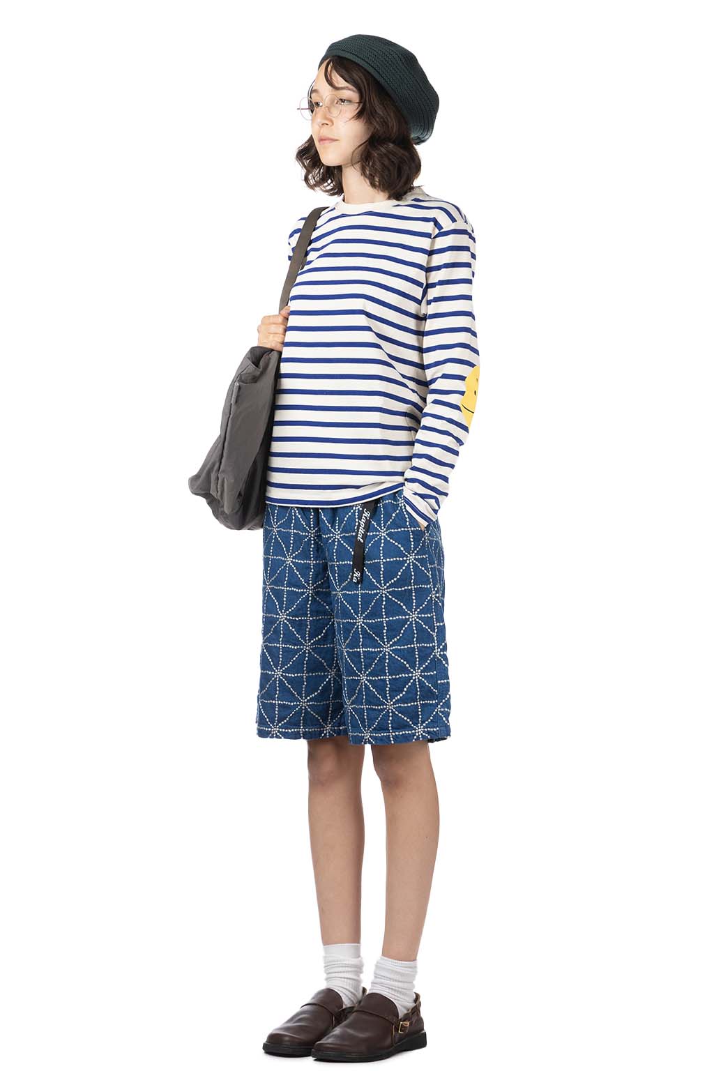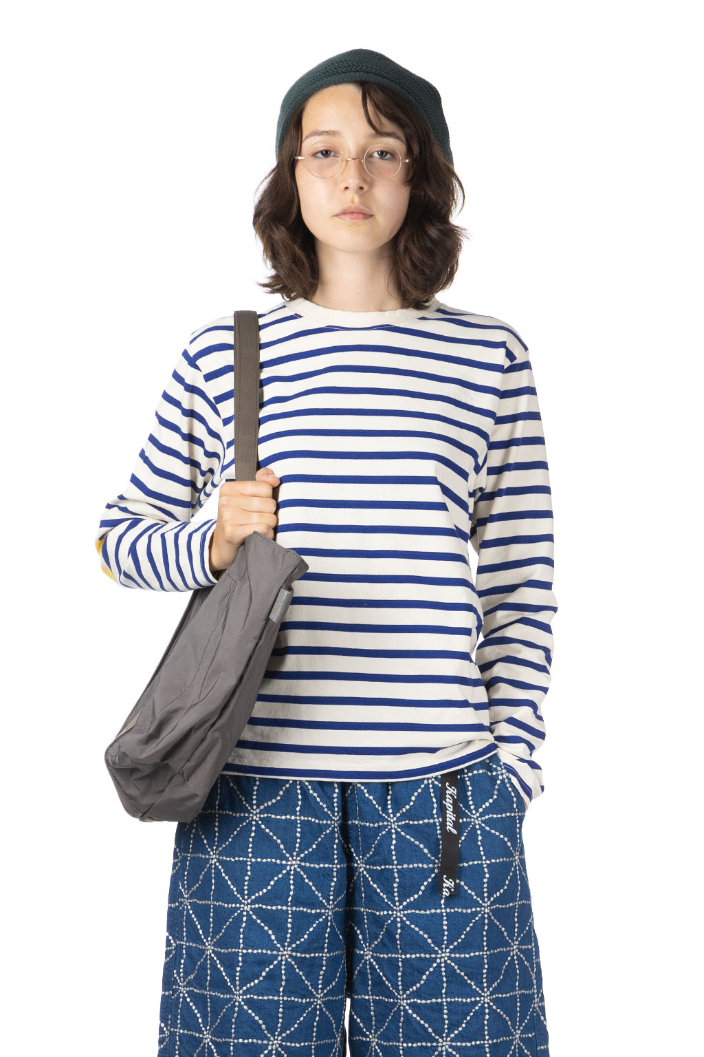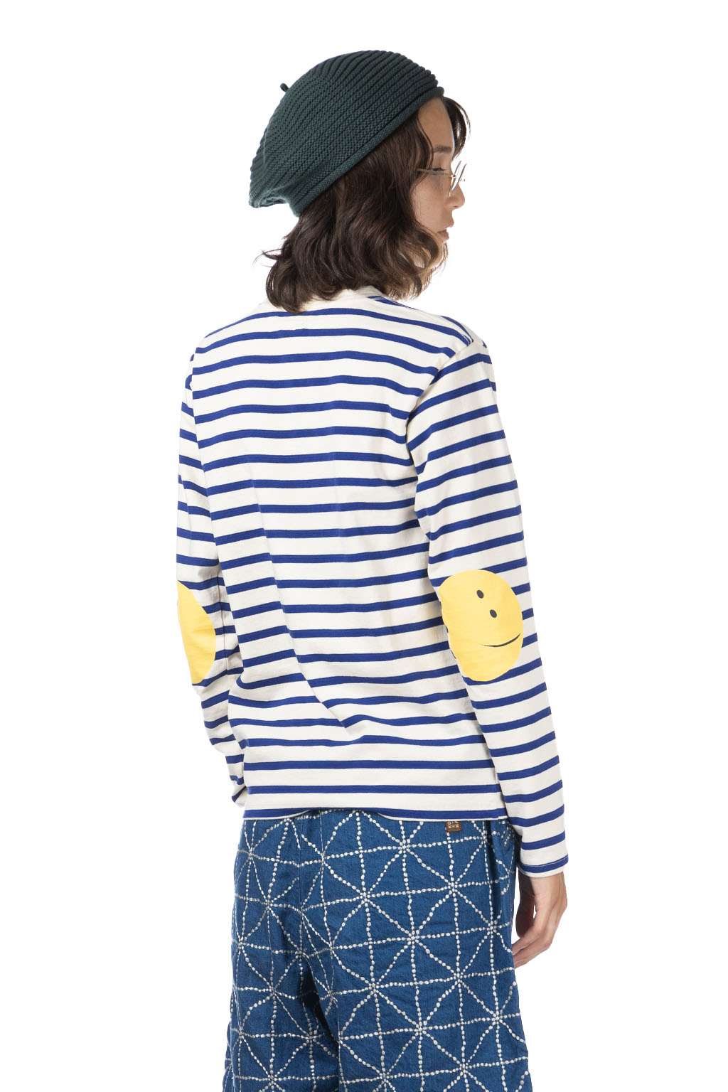 Stripe Jersey Crew LS Tee (PROFILE RAINBOWY Patch) - Ecru x Blue