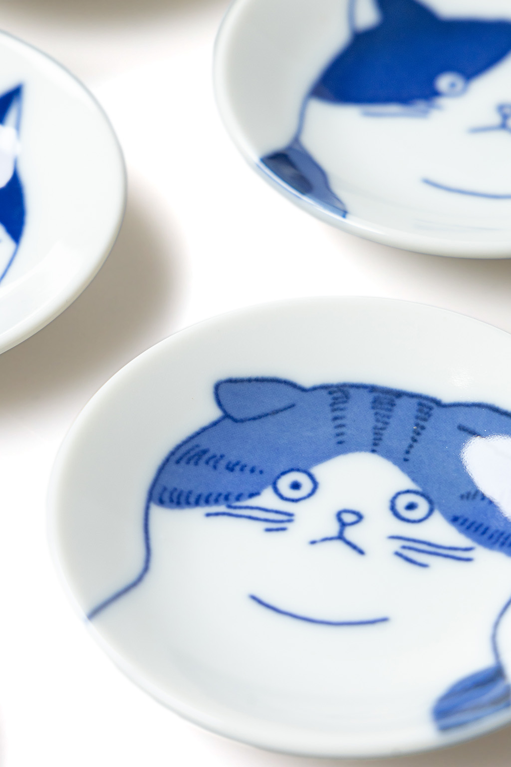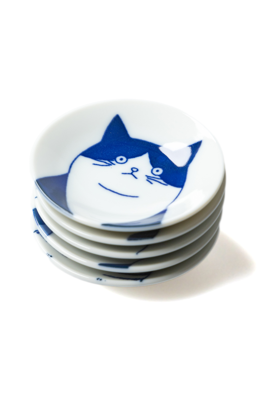 • A set of 5 Mamezara (small plate) with cute cat faces