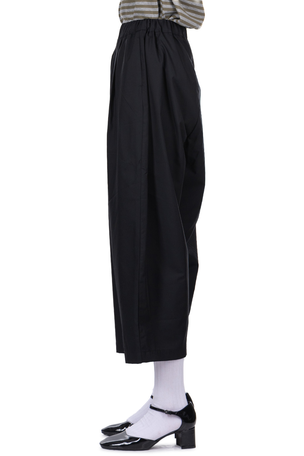 Twill Tuck Wide Pants - Black