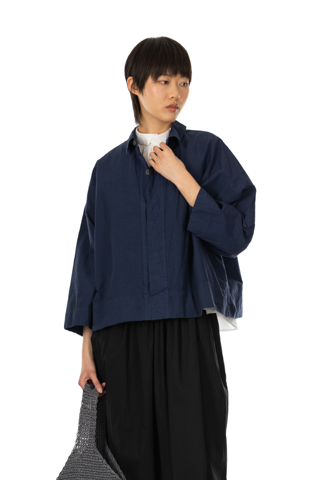 • A shirt with a compact length and a boxy silhouette with relaxed armholes and body width